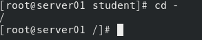 (11)切换到前一个工作目录。 [root@server01 student]# cd - / [root@server01 /]#