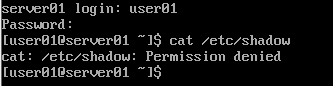结论:/etc/shadow文件只有root用户有权限登录 (4) 在虚拟控制台界面F3,使用user01用户查看自己的主目录,与通过查看/etc/passwd文件查看到user01用户的主目录是否一致,写出查看结果。