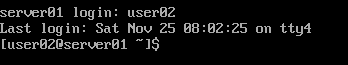 查看结果:/var/user02 (7) 通过设置,想办法让用户user02在虚拟控制台界面F4成功登录。 [root@server01 ~]# passwd user02
