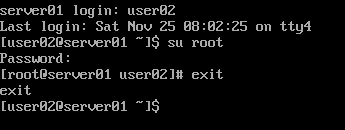 结论:可以使用id命令查看用户的用户标识码、主组、附属组 (17) 在虚拟控制台界面F4,user02用户登录后,切换为root用户;从root用户退回到user02用户。