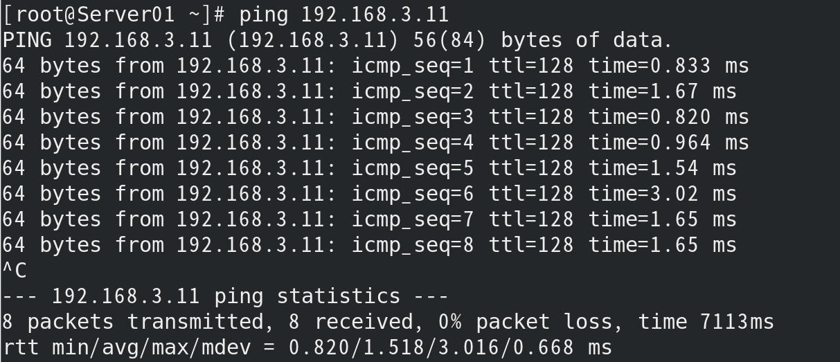 (6) 使用nmtui菜单配置主机IP 为192.168.X.3,检测主机与宿主机的连通情况。