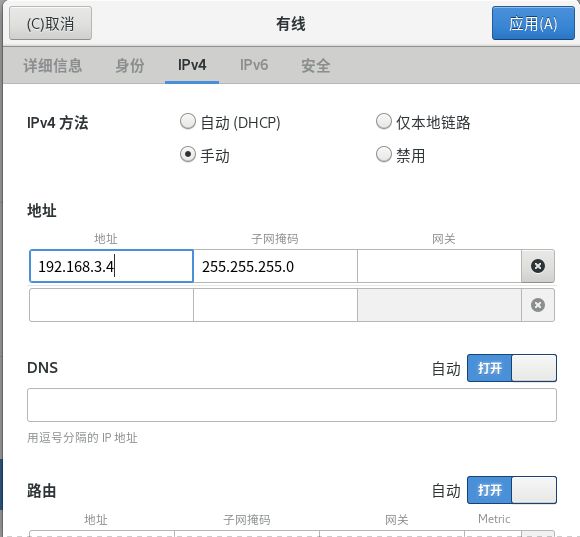 (7) 使用系统菜单配置主机IP 为192.168.X.4,检测主机与宿主机的连通情况。