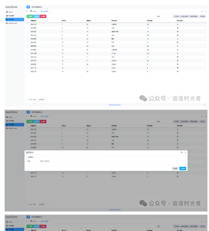 主要是常见Table的数据展示、数据添加、数据删除、数据修改等操作。