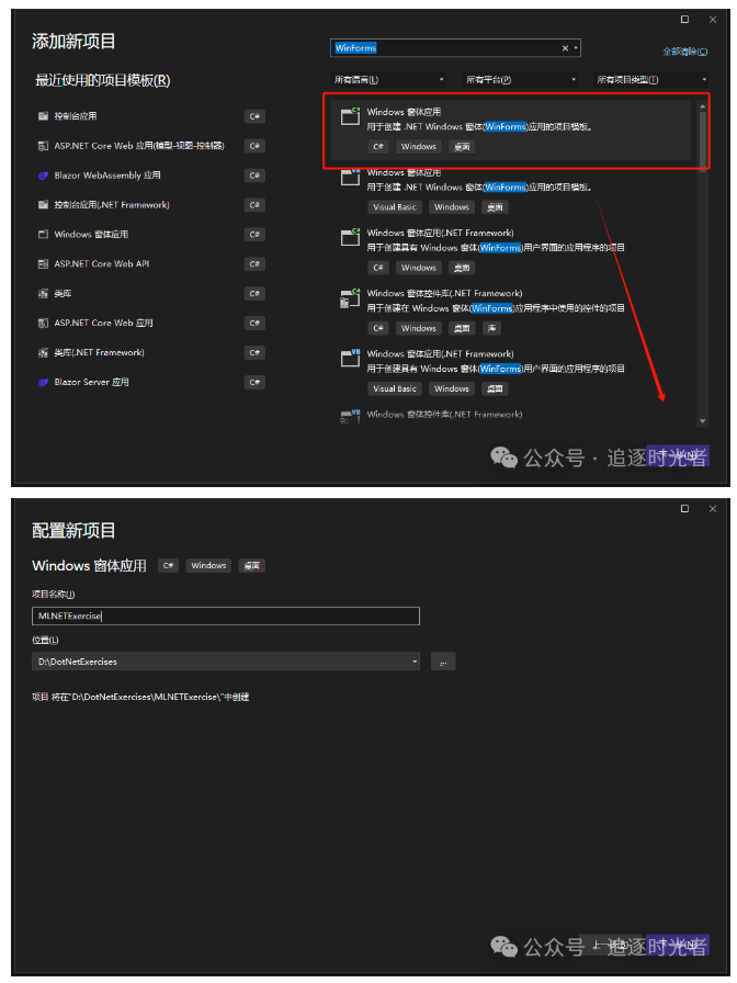 创建一个名为:MLNETExercise的.NET8 WinForms应用。