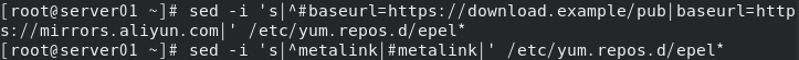 [root@server01 ~]# sed -i 's|^#baseurl=https://download.example/pub|baseurl=https://mirrors.aliyun.com|' /etc/yum.repos.d/epel*