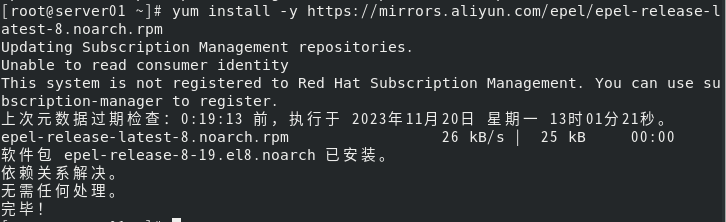 [root@server01 ~]# yum install -y https://mirrors.aliyun.com/epel/epel-release-latest-8.noarch.rpm