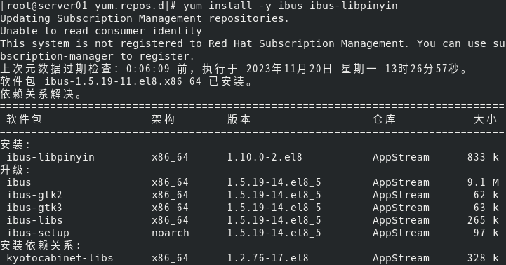 [root@server01 yum.repos.d]# yum install -y ibus-libpinyin