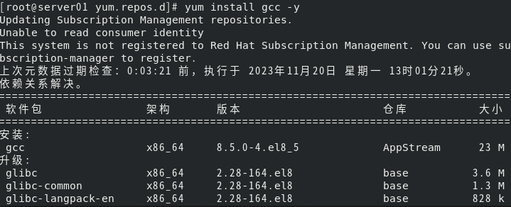 [root@server01 yum.repos.d]# yum install gcc -y