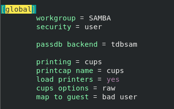 修改samba主配置文件smb.conf。 [root@server01 samba]# vim /etc/samba/smb.conf