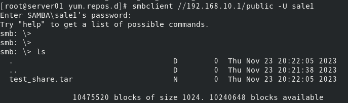 更改共享目录的context值。 [root@server01 samba]# chcon -t samba_share_t /share/