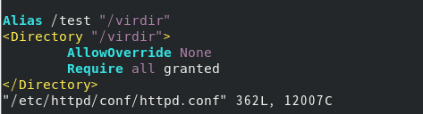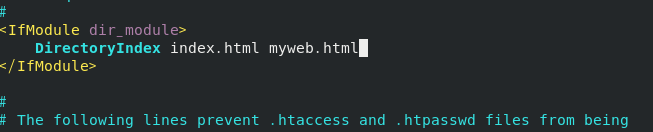4、修改/etc/httpd/conf/httpd.conf文件,在文件末尾添加下面的语句。 存盘退出。
