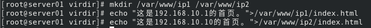 2、分别创建/var/www/ip1和/var/www/ip2两个主目录和默认文件。