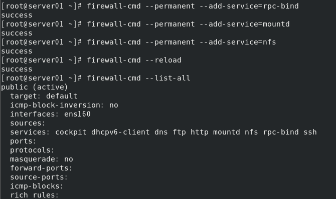 4、设置rpc-bind、mountd和nfs三个服务的防火墙选项为允许。