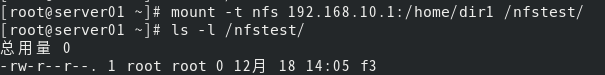 使用命令挂载NFS共享,查看挂载结果,成功看到共享目录内容。