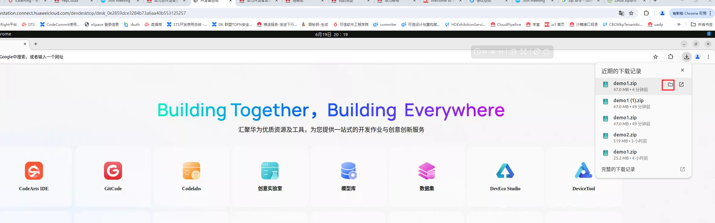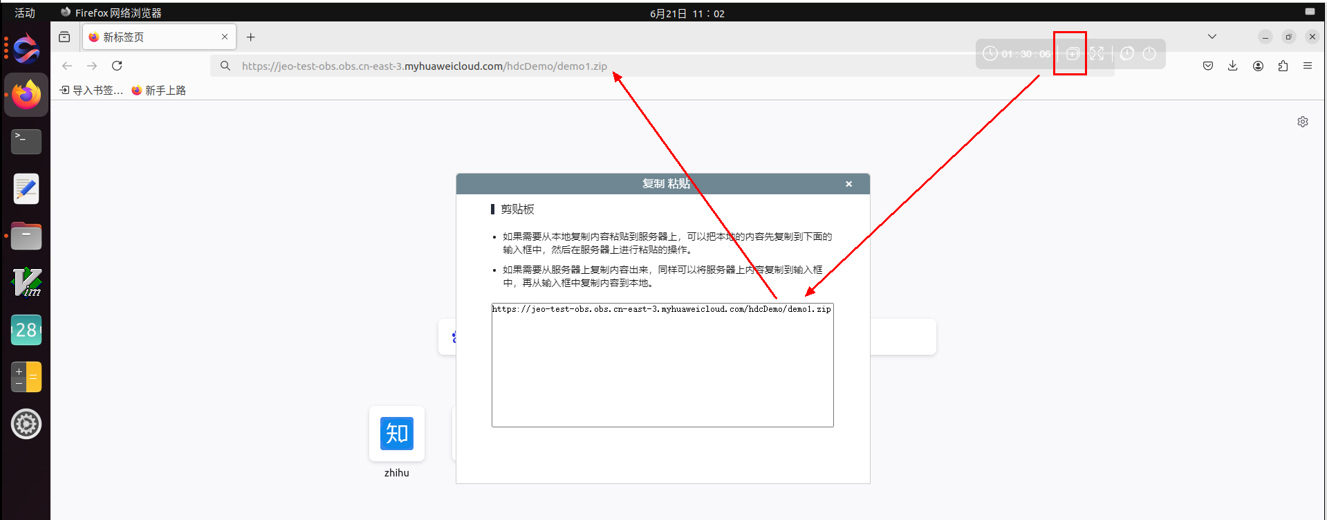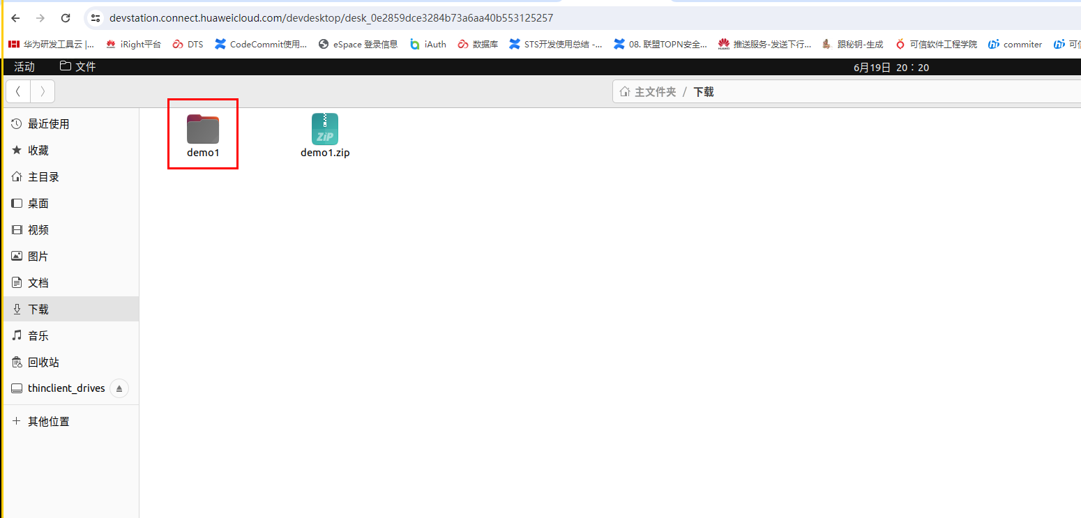 在【云主机→浏览器】打开地址:https://jeo-test-obs.obs.cn-east-3.myhuaweicloud.com/hdcDemo/demo1.zip ,按回车键进行下载