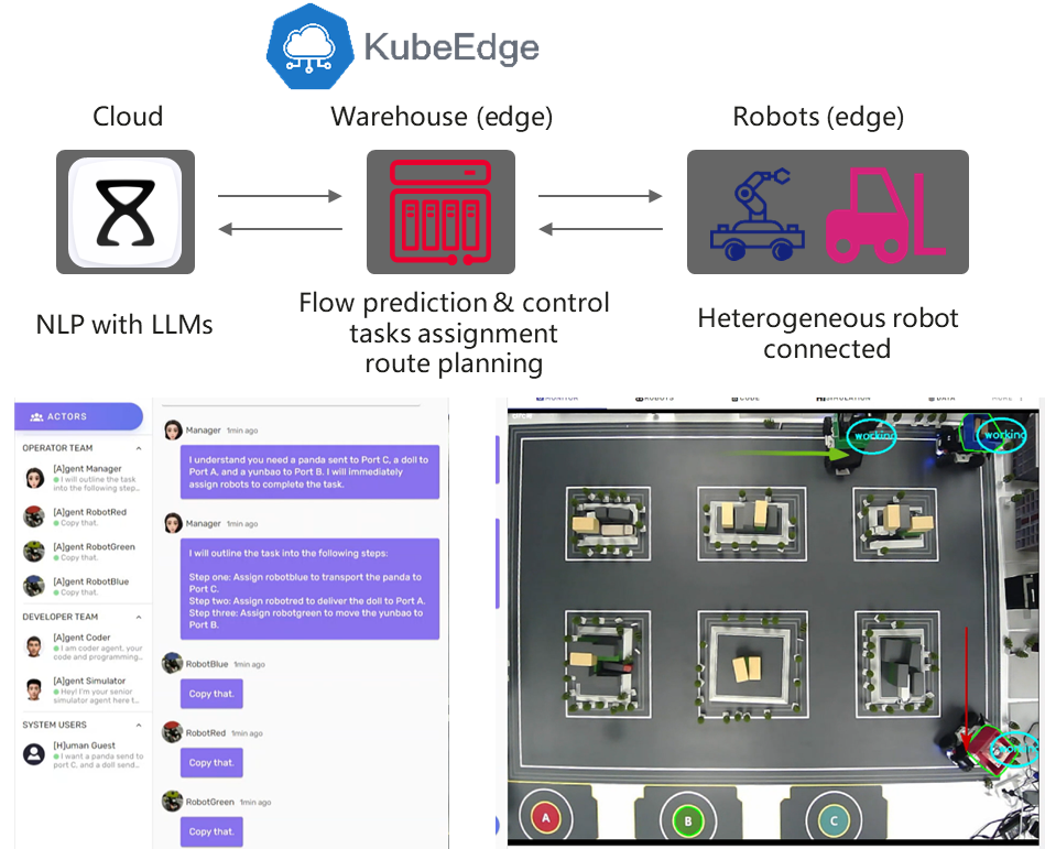 当前基于KubeEdge的多云原生机器人编排实现了基于多机器人协调的NLP驱动的任务理解和任务执行功能,能将云边端系统端到端部署周期缩短30%,机器人效率提高 25%,新型机器人集成周期由数月缩短至数天。