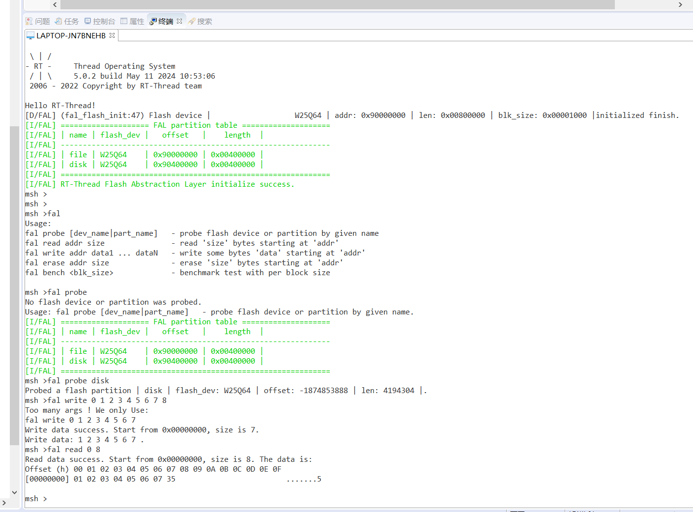 结果:使用ospi驱动实现FAL。