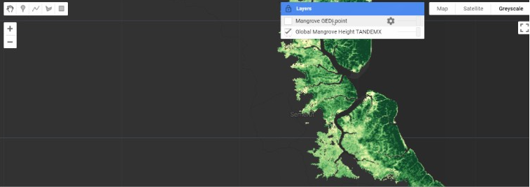根据 NASA 地球科学计划数据和信息政策,ORNL DAAC 托管的数据不受限制地开放共享: Simard et al 2024 在 GEE 中的策划:Samapriya Roy Samapriya Roy 关键词 红树林、Tandem-X、树冠高度、GEDI 最后更新 : 2024-07-26