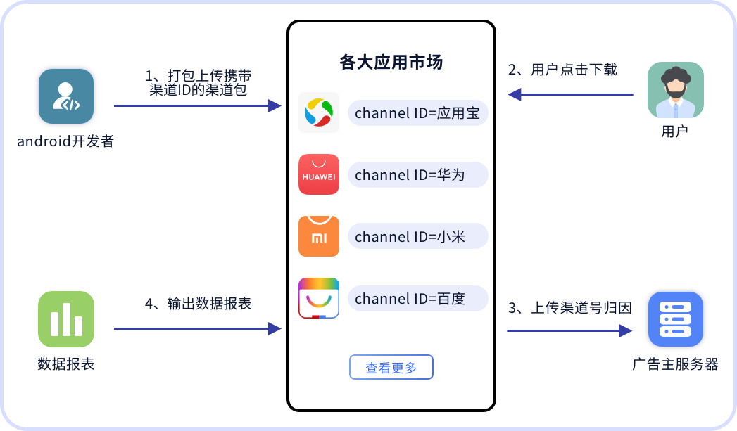 简单来说就是基于国内安卓市场碎片化的环境做出的处理,由于国内安卓市场天然存在众多安装商店,比如华米OV等手机厂商渠道;应用宝、百度、360等第三方渠道。