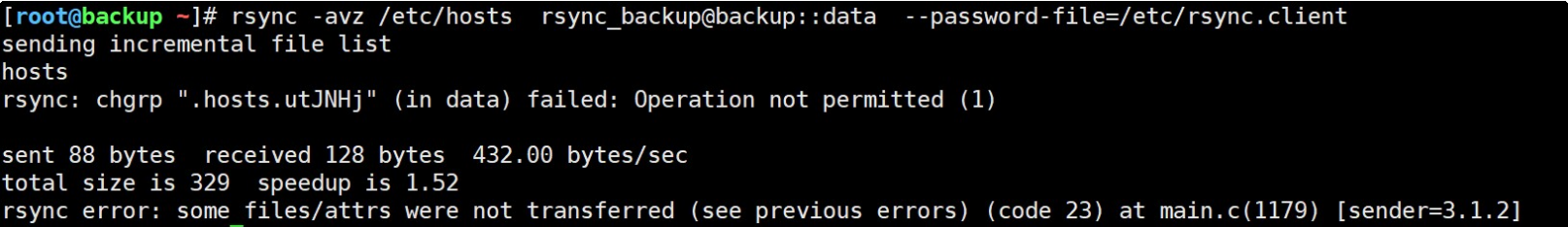 Jan 10 11:08:00 backup rsyncd[3177]: auth failed on module data from UNKNOWN (10.0.0.41) for rsync_backup: no secrets file