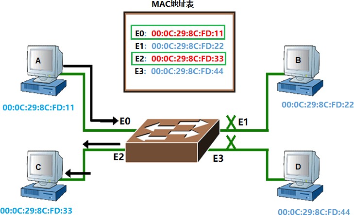 并且能够进行地址学习(源端和目标端的MAC地址),维护一张MAC地址表
