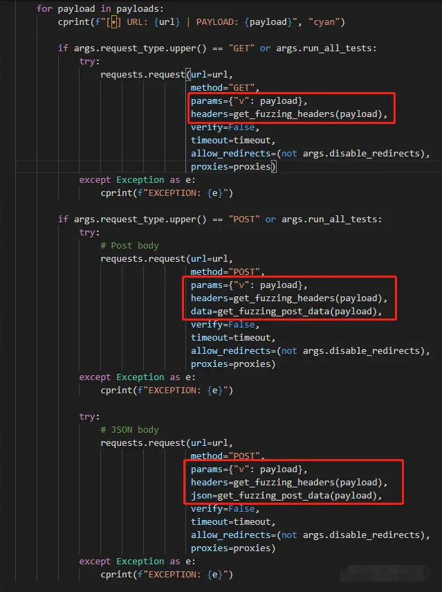 看源码主要是通过headers、params、data 传入注入信息。