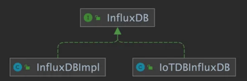 该适配器以 IoTDB Java ServiceProvider 接口为底层基础,实现了 InfluxDB 的 Java 接口 interface InfluxDB,对用户提供了所有 InfluxDB 的接口方法,最终用户可以无感知地使用 InfluxDB 协议向 IoTDB 发起写入和读取请求。