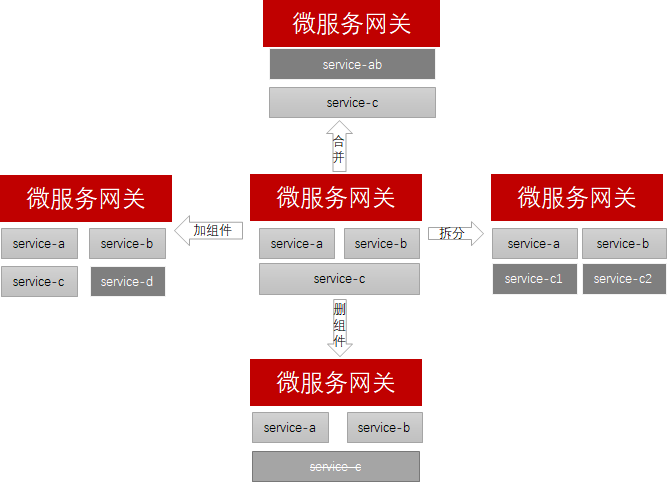 业务变化主要指功能的增、删、改,在微服务架构下,表现为REST接口的调整、微服务的拆分。Fence项目通过引入微服务网关来屏蔽业务变化对最终用户的影响。