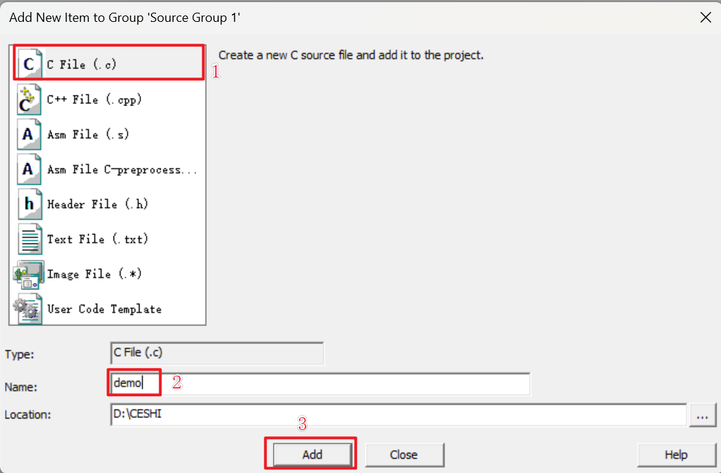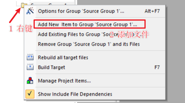 到这里工程的创建就结束了,根据不同的库在自己的工程目录(到自己电脑里,直接复制黏贴放置)里添加自己库的文件,然后再配置Keil将文件添加到工程里,比如ST的标准库,就可以把ST的库文件放进来使用。下图为添加文件的方法