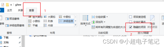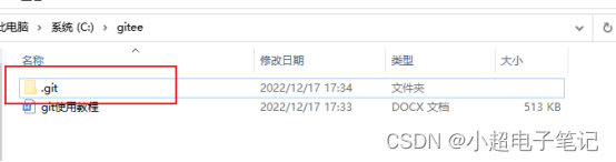 4 、这个时候文件夹里会多出一个.git文件,这个不要删除他的作用是用来记录项目改动的。(如果没有点击查看勾选上隐藏项目就可以看到了)