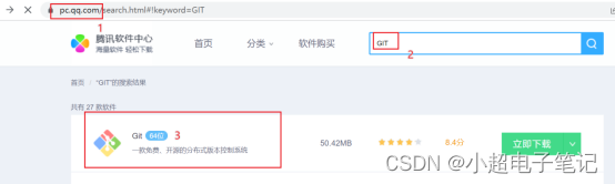 2、安装Git,可以直接进入官网下载 Git ,如果感觉下载的太慢可以进入下图所示网址搜索下载。下载好之后直接安装就行。