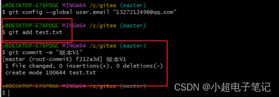 6、Git的使用可以分为两种,第一种是本地文件的版本管理,第二种是连接远程版本库,比如我们在GItee上创建的版本库(可以实现不同电脑直接的项目文件管理,以及不同人直接的协作)邮箱。