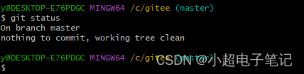 10、现在再使用git status命令,可以看到提示没有需要添加的了。