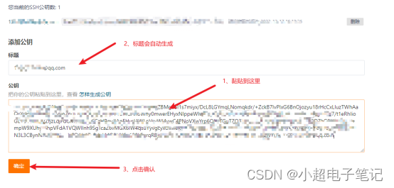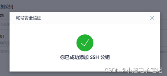 5、这里我们的公钥就添加完成了,接下来复制上远程库的ssh。