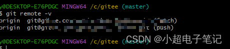 7、可以使用git remote -v 命令验证是否关联成功。(可以看到我们已经关联成功了)。