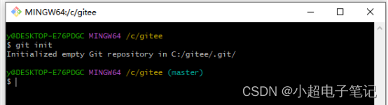 3、打开之后输入初始化命令git init (此命令可以对文件夹进行版本库的初始化)