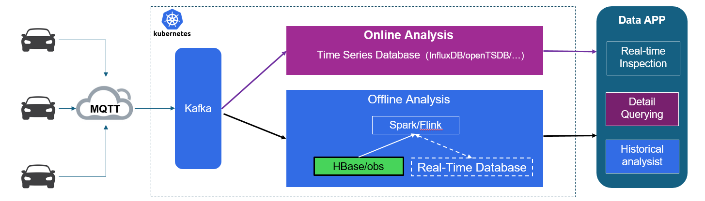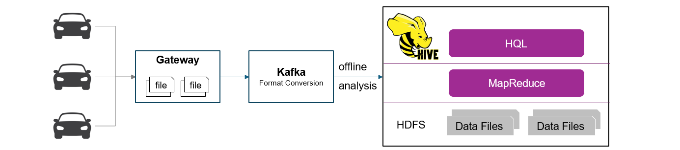 早期车联网不具备实时分析能力,广泛采用支持大规模分析的分布式数据仓库Hive,但从数据采集、存储和分析整个流程来看,离线处理时间太长,通常是天级别,效率低。