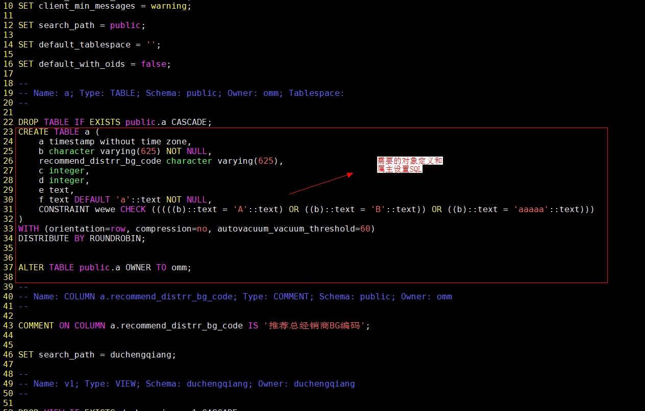 步骤2:根据dump结果获取手工重分步对象的定义和属主权限SQL