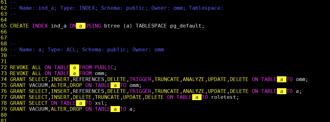 步骤1:dump表定义,主要确定表的依赖和授权情况