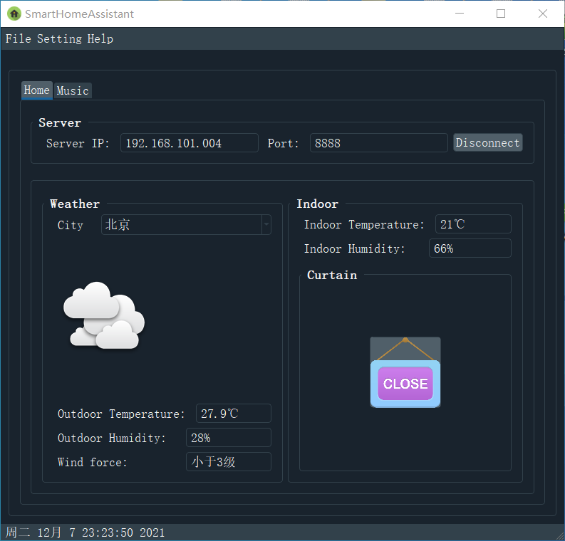 应用软件是基于PyQT5开发,可在Windows、Linux、MacOS平台运行,通过socket编程与网关通信。应用软件的功能和语音交互的功能差不多,开发的目的是为用户提供更多的选择,方便用户使用。