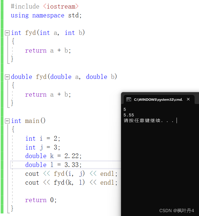 ·使用C++输入输出更方便,不需要像printf / scanf输入输出时那样,需要手动控制格式。C++的输入输出可以自动识别变量类型。