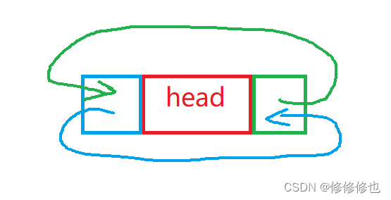 双向循环带有头结点的空链表示意图: