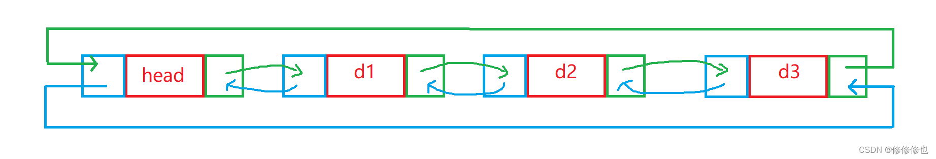 双向循环带有头结点的非空链表示意图: