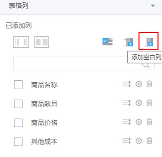 (4)选中表格,在“属性 > 表格列 > 已添加列”中,单击,添加一个空白列。