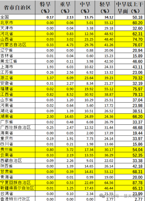 轻旱面积34.12%、中旱面积13.75%、
