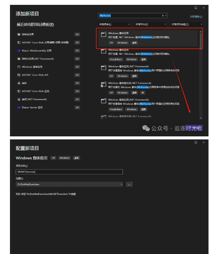 创建一个名为:MLNETExercise的.NET8 WinForms应用。