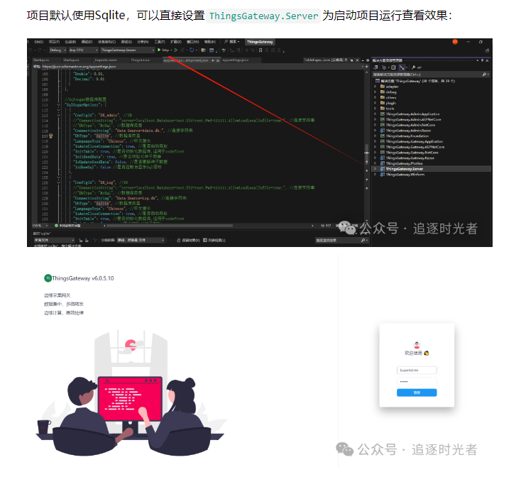 项目默认使用Sqlite,可以直接设置ThingsGateway.Server为启动项目运行查看效果: