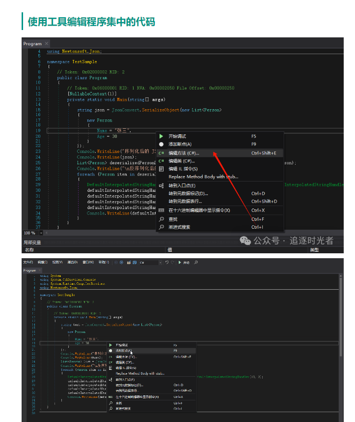 支持编辑 .NET Framework、.NET 和 Unity 程序集。 -