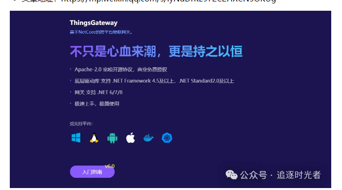 文章简介:分享一款基于.NET8开源的跨平台高性能边缘采集网关,提供底层PLC通讯库,通讯调试软件等,单机采集数据点位可达百万:ThingsGateway。 -
